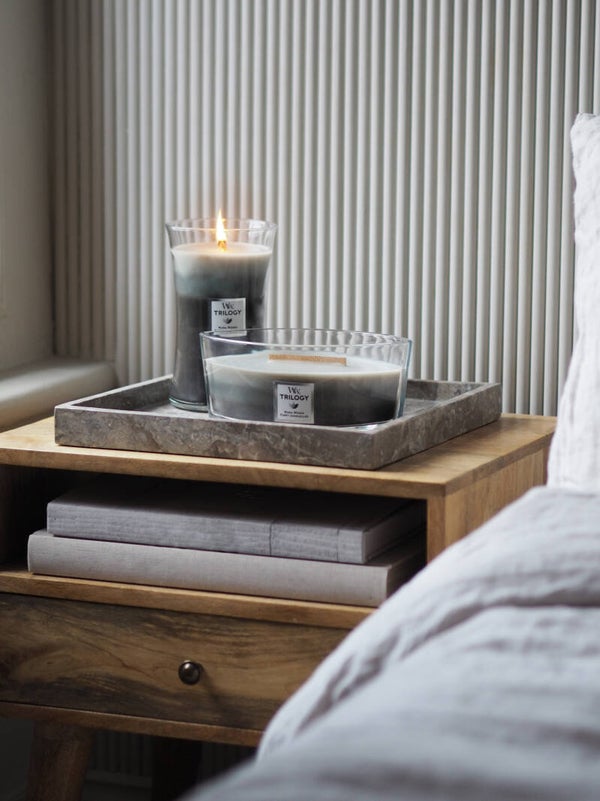 Laat je huis vullen met de warme, uitnodigende sfeer van Warm Woods. Deze Trilogy-kaars combineert drie unieke lagen die tijdens het branden subtiel in elkaar overvloeien: Fireside met zijn rokerige amber en muskus, Redwood met een rijk houtachtig karakter, en Sandalwood Clove met kruidige en warme accenten.